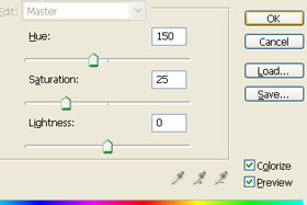 Označite Colorize. Hue nastavite 150, Saturation 25 in Lightness 0. Seveda vam priporočam, da se sami poigrate z barvnimi nastavitvami. Kliknite na gumb OK. |