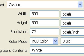 Ustvarite nov dokument v velikosti 500 * 500 pik.
