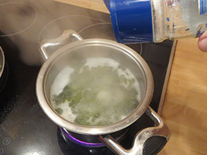 Vzemite večji lonec in ga postavite na kuhalno ploščo z nastavljeno najvišjo temperaturo. |