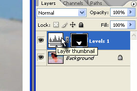 V paleti layerjev dvakrat kliknite na prej ustvarjeni Adjustment layer (Levels, glej sliko).