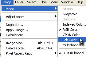Kliknite zgoraj na Image, Mode in izberite Lab Color.