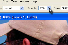 Zgoraj v orodni vrstici določite Opacity 30%.