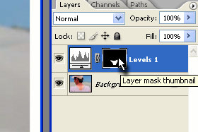 V paleti layerjev kliknite na okno, ki predstavlja masko (glej sliko).