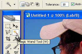 Izberite Magic Wand Tool (bližnjica je tipka W).