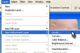 Klikmnite zgoraj na Layer, New Adjustment Layer in izberite Levels...