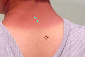 Uporabite še orodje Healing Brush Tool za lepši preliv med porjavelo in neporjavelo kožo. Če bi radi tiste dve točki izbrisali, ponovno označite orodje Eyedropper Tool (bližnjica je tipka I) in zgoraj v orodni vrstici kliknite na gumb Clear. |