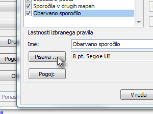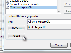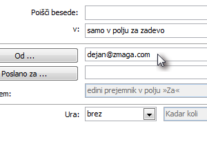 ![]() V novem oknu v polje Od vpišite e-poštni naslov, za katerega želite, da se vam bo obarvalo. Lahko pa kliknete na gumb Od ..., kjer izberete stik v vašem adresarju. Kliknite na gumb V redu. |