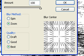 Odpre se novo okno. Amount določite 100, Blur Method Zoom in Quality Best. Kliknite na gumb OK. |