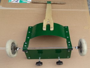 ![]() 4.12.Za stabilnost vozička sem uporabil 2 kos nogice od kavča. V ravno spodnjo ploščo sem zvrtal 2 luknji fi 6,5 mm. Nogice pa sem pritrdil z 2 kos vijaki M5 x 120 mm. Za vsak vijak sem uporabil 3 kos matice s podložko. |