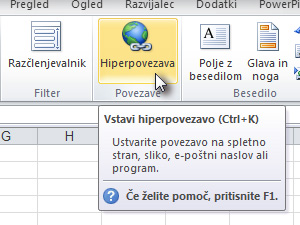 ![]() Sedaj bomo naredili povezave na njih. Kliknite na zavihek Vstavljanje. |