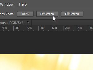 ![]() Ko boste imeli izbrano orodje Zoom Tool, lahko prikažete sliko v polni velikosti, ali da se vam prilagodi zaslonu ali pa prostoru tako, da klikate na zgornje tri gumbe (glej sliko). |