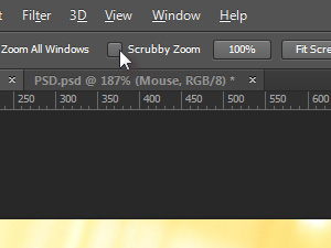 ![]() Scrubby Zoom naj ne bo več označen. Ta možnost je v novejših različicah. Če imate starejšo različico Photoshopa, potem ta korak preskočite. |