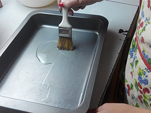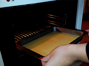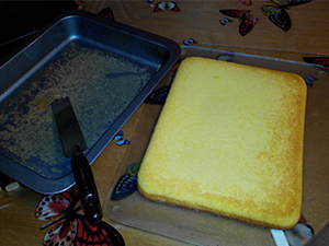 Ko je biskvit pečen, ga ohladimo in ga previdno vzamemo iz pekača. |