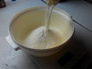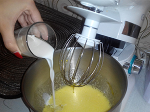 Prav tako 1 dl mleka in ponovno zmešamo. |