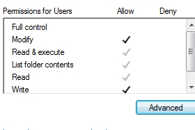 Nato v okencu Properties kliknete zavihek (zgoraj) "Security" in v spodnjem izbirnem polju izberete "Users(uporabnik-PCusers)".