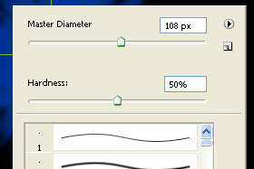 Kliknite z desnim miškinim gumbom na sliko in Master Diameter določite 108 px ter Hardness 50%.