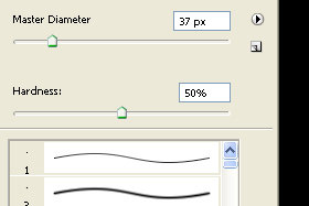 Kliknite z desnim miškinim gumbom na sliko in Master Diameter določite 37 px ter Hardness 50%. Pritisnite tipko ESC, da zaprete okno. |