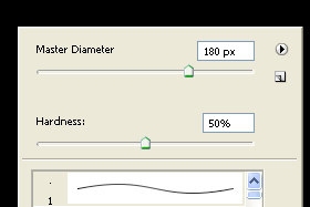 Kliknite z desnim miškinim gumbom na sliko in Master Diameter določite 180 px ter Hardness 50%.