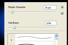 Kliknite na sliko z desnim miškinim gumbom in določite manjši Master Diameter na okoli 16 px.