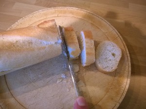 Pripravite kruh in ga narežite na rezine. V mojem primeru sem uporabil francosko štruco.