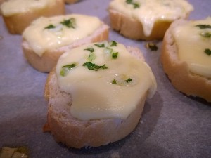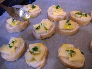 Narezan sir postavite na koščke kruha. |