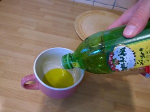 Pripravite šalico in v njo vlijte malo olivnega olja. |