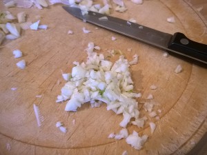 Vzemite malo česna in ga nasesekljajte. Najprej česen olupite in odrežite peclje.
