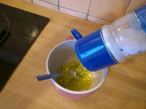 Česen postavite v šalico z olivnim oljem ter nato vse skupaj posolite. |