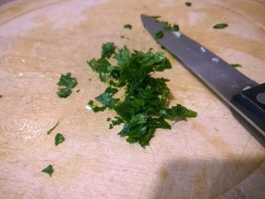 Vzemite malo peteršilja, ga umijte ter narezite na manjše koščke. |