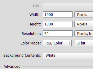 Ustvarite nov dokument z dimenzijami 1000 x 1000 slikovnih pik.