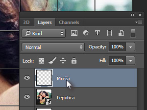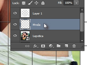 ![]() Kliknite zgoraj na Select in izberite Deselect, da pobrišete selekcijo. Označite layer z mrežo (glej sliko). |