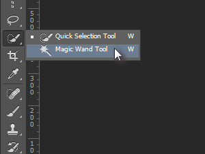 ![]() Izberite orodje Magic Wand Tool. Držite z miško na orodju Quick Selection Tool (bližnjica je tipka W) toliko časa, dokler se vam ne prikažejo ostala orodja.