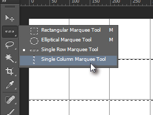 ![]() Izberite orodje Single Column Marquee Tool. Držite z miško na orodju Single Row Marquee Tool (bližnjica je tipka M) toliko časa, dokler se vam ne prikažejo ostala orodja.
