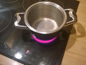Potem, ko ste dodali blečni zdrob, nastavite temperaturo na srednjo jakost in redno mešajte.
