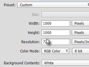 Najprej ustvarite nov dokument z dimenzijami 1000 x 1000 slikovnih pik.