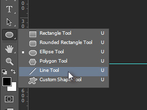 ![]() Sedaj bomo ustvarjen krog razdelili na enako razdeljene segmente. Izberite orodje Line Tool. Držite z miško na prej izbranem orodju Ellipse Tool (bližnjica je tipka U), da se vam prikažejo ostala orodja. |