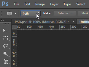![]() Zgoraj nastavite Path (glej sliko). S tem smo določili izbranemu orodju, da določi le pot krog in ga ne nariše dobesedno.