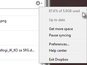 ![]() V oknu kliknite gumb za nastavitve, kjer boste lahko trenutno količino prostora, ki ga imate na voljo za vaše datoteke. V mojem primeru imam trenutno na voljo 5.9 GB prostora. |