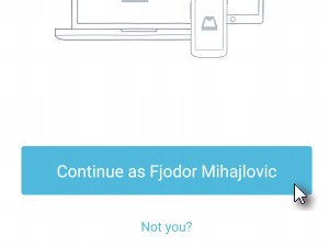 ![]() Ko je aplikacija nameščena, jo zaženite. Če na telefonu že uporabljate Dropbox aplikacijo, bo vaš račun avtomatsko razpoznan, v nasprotnem primeru pa boste morali vpisati še vaše uporaniško ime in geslo. Za nadaljevanje kliknite gumb Continue ...