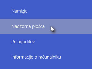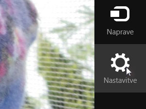![]() Sedaj bomo v Windows nastavili, da začetni zaslon išče le aplikacije v meniju Start menu. Z miško se postavite v zgornji desni rob, da se vam prikažejo dodatne možnosti in izberite Nastavitve. |