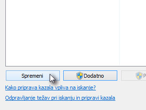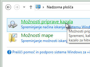 ![]() V nadzorni plošči v iskalno okno vpišite indexing options ... |