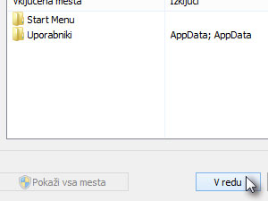 ![]() V novem oknu boste videli vključena mesta, katere Windows išče v začetnem zaslonu. |