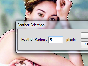 ![]() Kliknite zgoraj na Select, Modify in izberite Feather... V novem oknu nastavite Feather Radius na okoli 5 pixels in kliknite na gumb OK. |
