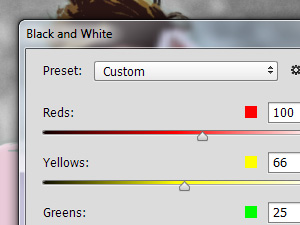 ![]() Kliknite zgoraj na Image, Adjustments in izberite Black & White... V novem oknu se poigrajte z nastavitvami in kliknite na gumb OK. |