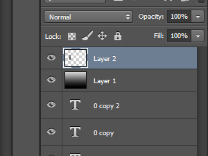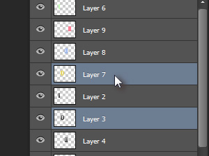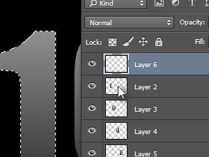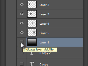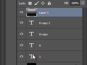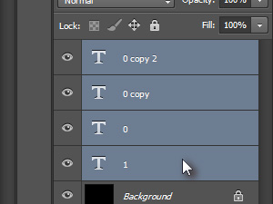![]() Ponovite postopek, dokler ne boste na enak način duplicirali vse ostale tekstovne layerje. Potem pa skrijte vse ostale layerje, razen layerjev z prelivom in prvotnega. |