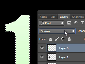 ![]() Pobarvanemu layerju nastavite senčenje na Screen (glej sliko). |