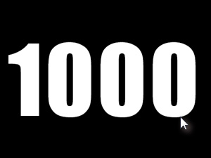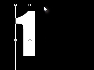 ![]() Pritisnite tipko X, da črno zamenjate z belo barvo. Potem pa z izbranim orodjem kliknite na doument in napišite prvo črko ali številko neke poljubne besede ali števila. Jaz nameravam ustvariti napis 1000. Potem pa tekstovni layer, ki ste ga ravnokar ustvarili, transformirajte tako, da kliknite zgoraj na Edit in izberete Free Transform. Jaz sem številko 1 postavil tako, da bo v celoti (1000) zapolnila 80 odstotkov dokumenta. |