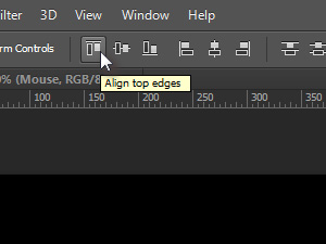![]() Izberite orodje Move Tool (bližnjica je tipka V). In nato zgoraj kliknite na ikono Align top edges. S tem ste poravnali napis.