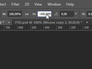 ![]() Kliknite zgoraj na Edit in izberite Free Transform... V orodni vrstici zgoraj v polje H nastavite -100% in potrdite. |