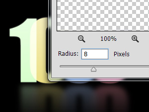 ![]() Kliknite zgoraj na Filter, Blur in izberite Gaussian Blur... V novem oknu Radius določite okoli 8 Pixels in kliknite na gumb OK.